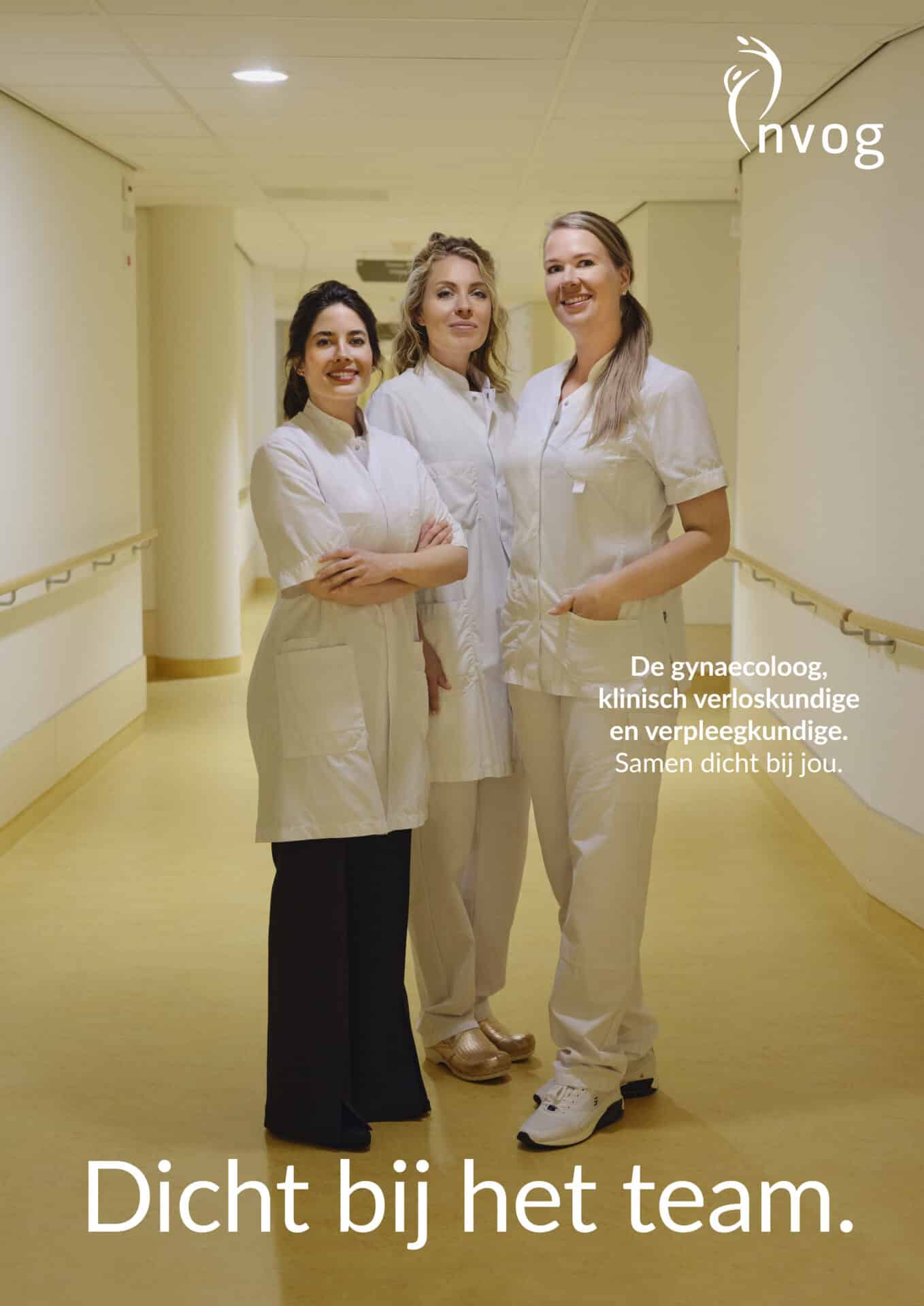 Met deze campagne zetten we de samenwerking in de tweedelijn letterlijk in beeld. De posters zijn onderdeel van De gynaecoloog. Dicht bij jou, en laten zien dat goede zorg begint met een goed team.